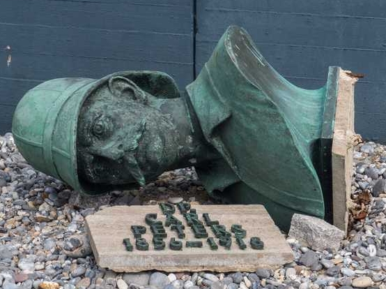 Und sie bekam einen neuen Sockel mit neuer Inschrift (Geschichte Erziehung Politik