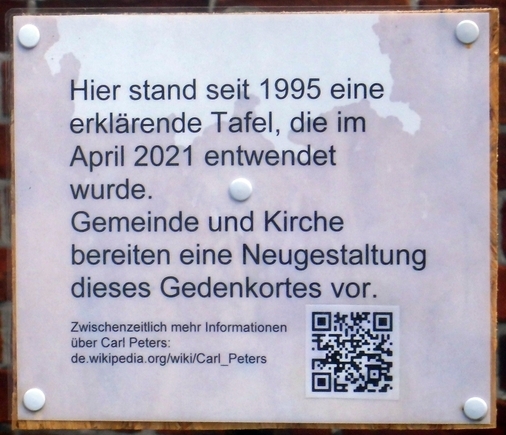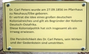 - neben dem Carl-Peters-Stein wird eine dauerhafte Erläuterungstafel angebracht mit folgendem Text: